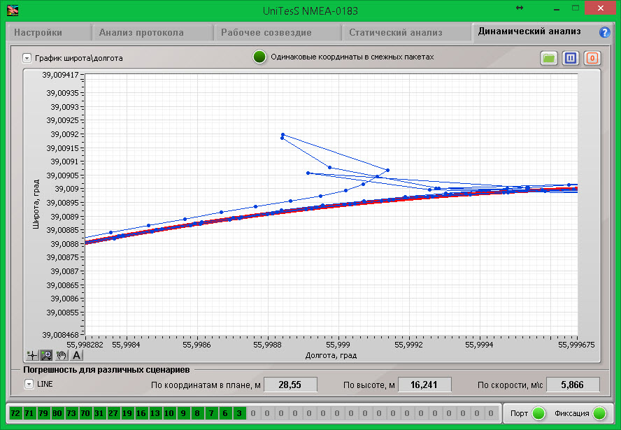 В ходе разработки наших решений по автоматизации измерений мы тестировали чипсеты от различных производителей. При имитации статической точки практически ни у одного нет никаких проблем, точность позиционирования очень высокая в от полутора – до трёх метров для GPS или ГЛОНАСС.