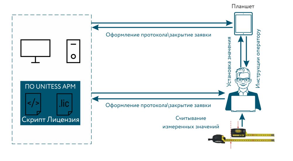 Т.к. поверка происходит удаленно от основного компьютера (рулетки бывают до 100 метров в длину, сам компаратор 50 метров), поверителю удобно измерять данные и сразу заносить их в удобный планшет, где есть установленный АРМ и Manager. После поверки можно формировать и печатать отчеты прямо с планшета, либо с основного компьютера, где так же благодаря гибкому обмену данными будут находиться все необходимые результаты для закрытия заявок и оформления протокола.